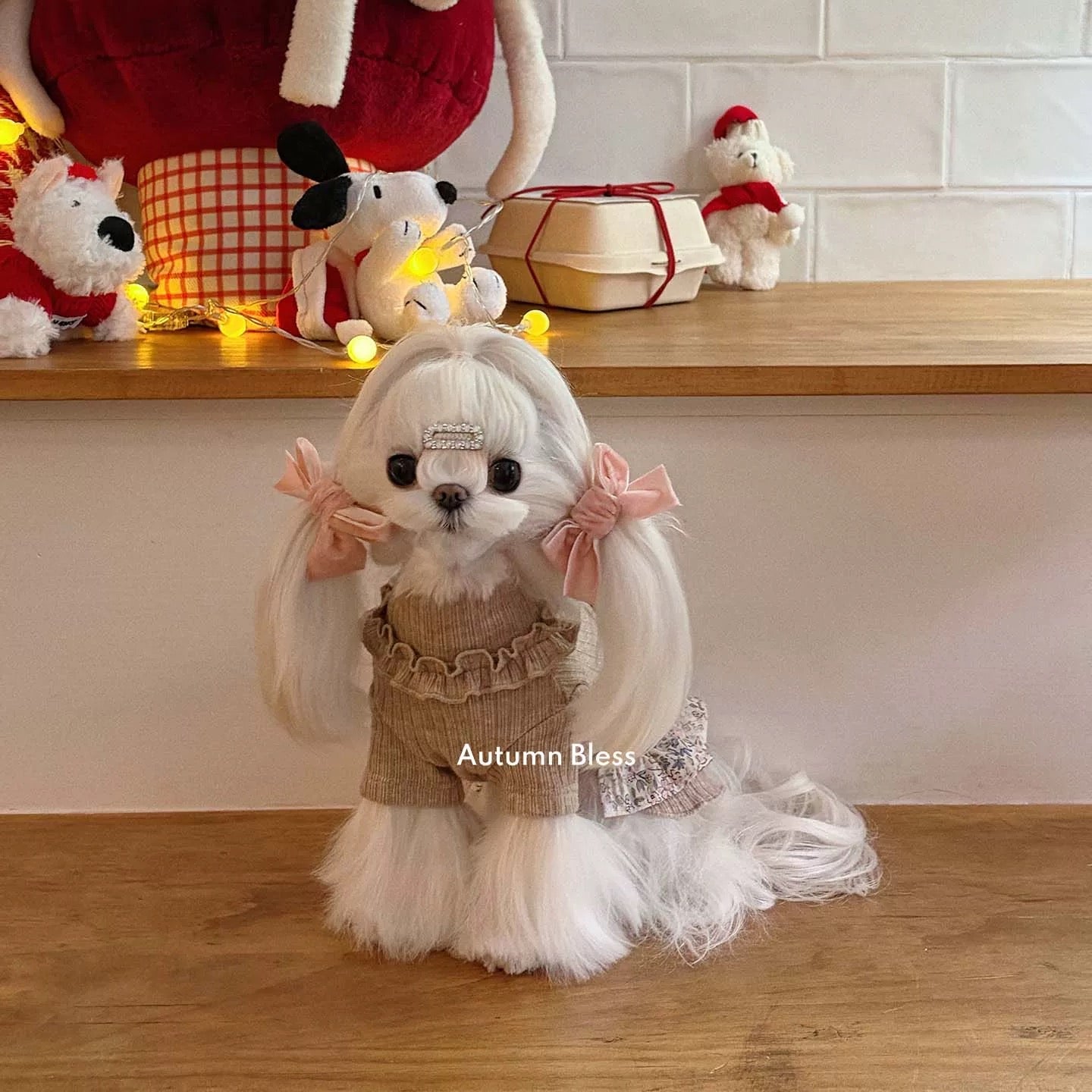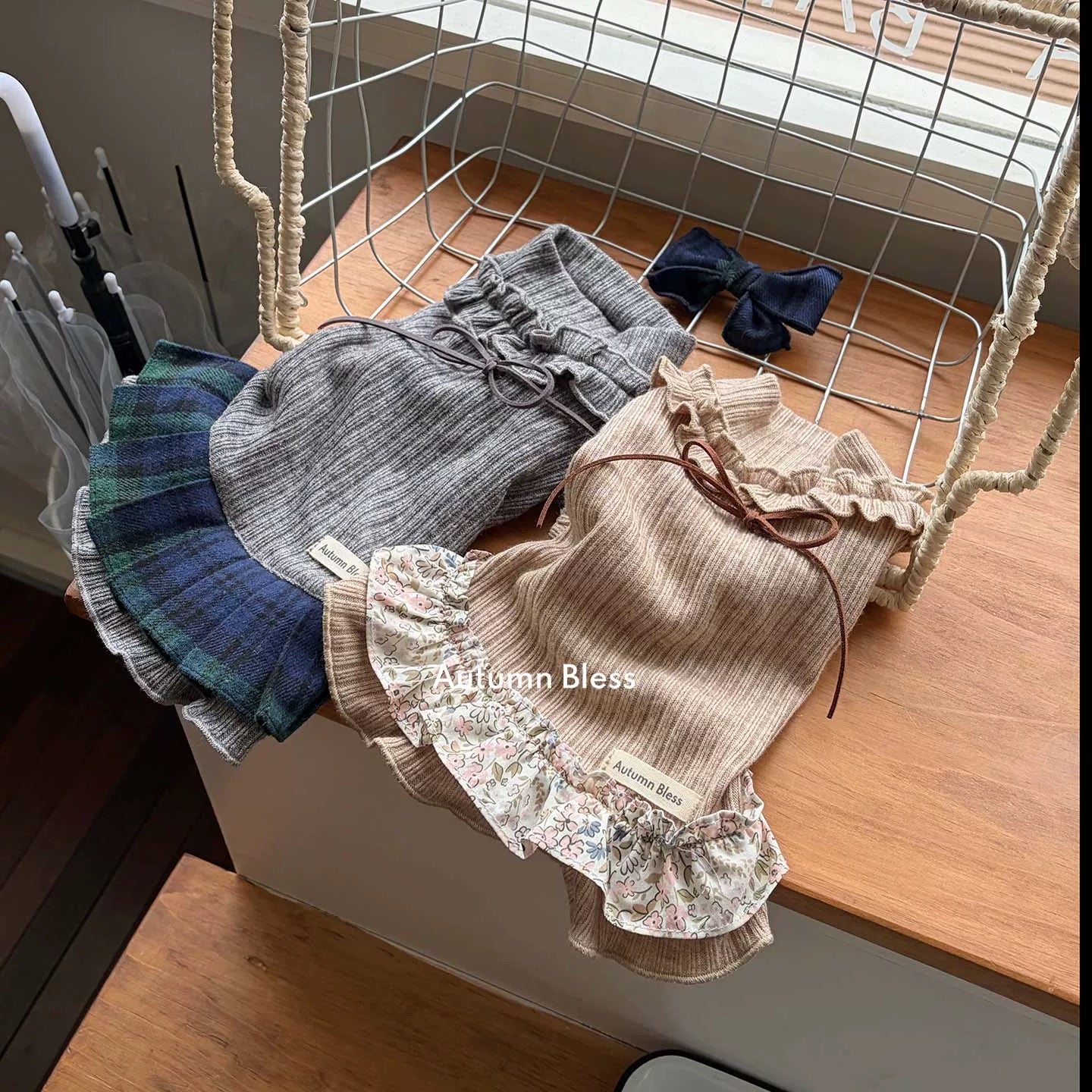 Autumn Bless スウィートニットリボンドレス – チェック/小花柄 | Sweet Knit Ribbon Dress – Plaid / Floral