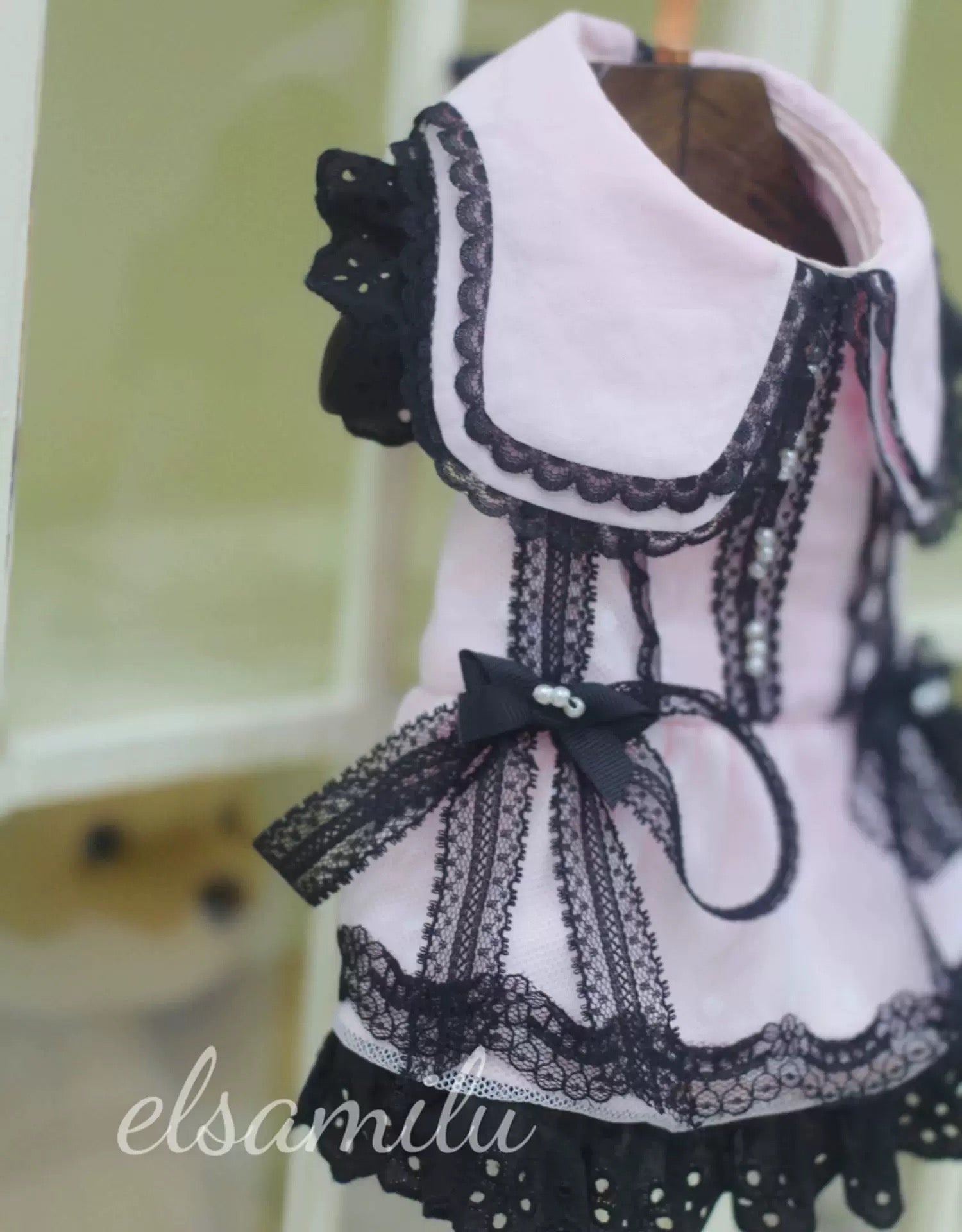 The Elsamilu Gothic Lace Flutter Sleeve Pet Dress combines soft pastel shades with bold black lace for a romantic gothic aesthetic.