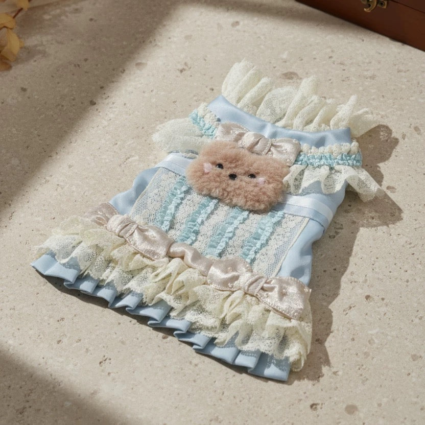 The Lovely Bear Romantic Dress – Blue features a dreamy mix of pastel blue tones, adorned with lace frills, ribbons, and a charming bear motif for the perfect girly touch.