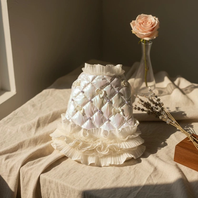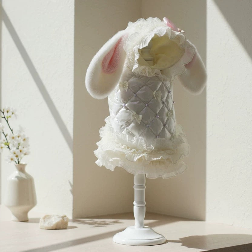 The gentle ruffled hem adds a romantic flair, while the insulated design keeps your pup snug and stylish during chilly days❄️