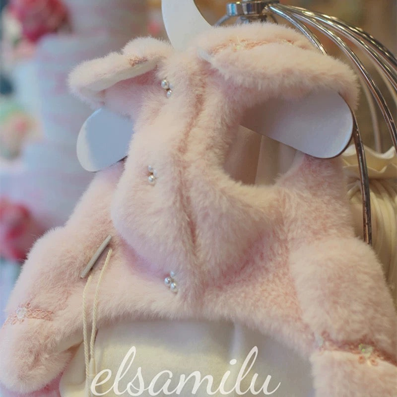 The Romantic Pink Fur Dress features luxuriously soft faux fur and elegant embroidered lace, creating a charming and feminine winter look.