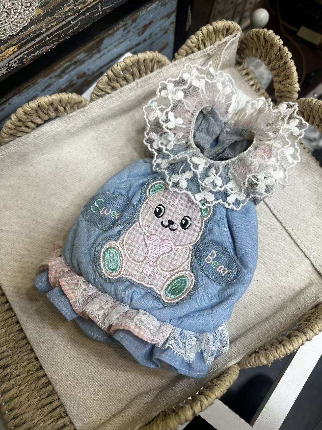 The Romantic Lace Collar Blouse features delicate floral lace, a sweet ribbon embroidery, and soft cotton fabric that’s gentle on your pup’s skin 🐾💕